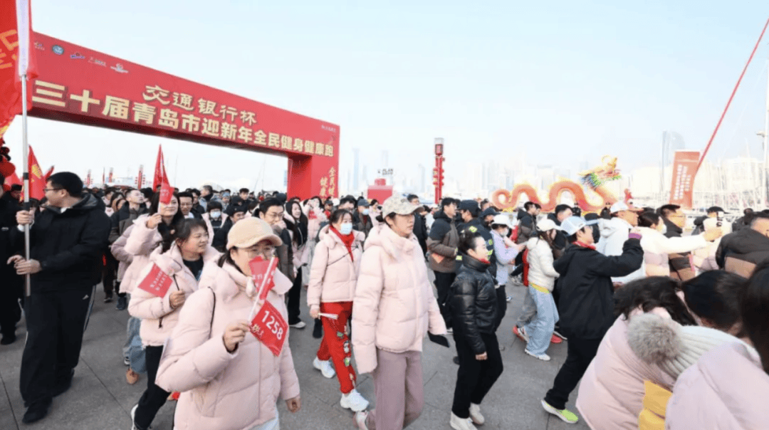 12月28日上午,“交通银行杯”2026第三十届青岛市迎新年全民健身健康跑活动在奥帆中心会议中心前广场鸣笛开跑。