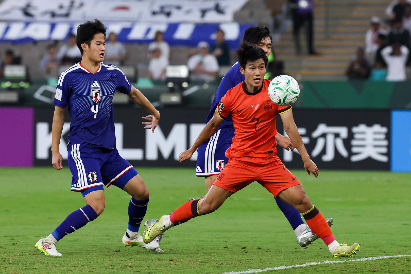 不过,22年来首次站在洲际决赛赛场,也给U23国足的小伙子们带来了一定的压力。开场后,他们还是显得较为紧张。第5分钟,日本队就在禁区内获得绝佳机会,混血前锋布赖恩·恩瓦迪克在角球乱战中胸部停球后大力抽射,好在李昊反应神速,将球挡出。第7分钟,U23国足还以颜色,向余望在禁区内接到队友的45度角传中后头球攻门,可惜没有顶上力量,被对方门将没收。