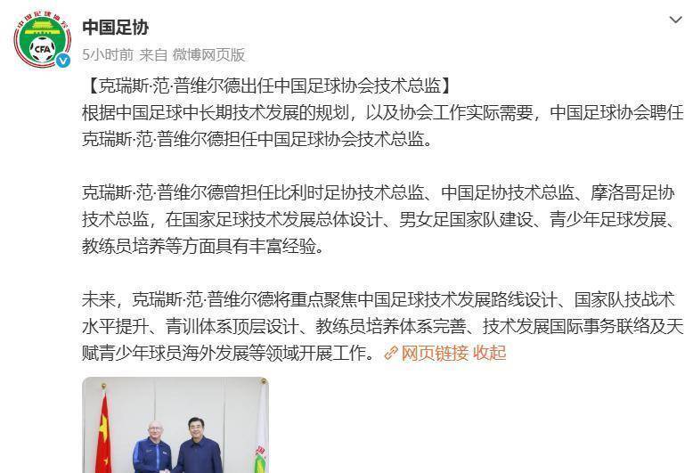 同一天,另一条消息从中国足协传出:克瑞斯·范·普维尔德被重新任命为中国足协技术总监。 这位老熟人曾在2018至2022年间担任过同一职务,如今再度回归。 足协给他的任务清单很长,包括设计技术发展路线、提升国家队技战术、构建青训顶层设计、完善教练员培养体系。 这项任命,恰好卡在了U23国足闯入决赛的当口。