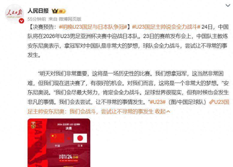 足球直播,世界杯直播,体育直播,足球比分,世界杯,足球赛事,足球,波胆,角球,串关,大小球“中国足球和日本足球之间的差距是巨大的,这一点很明确。 ”2026年1月23日,在沙特阿拉伯的赛前发布会上,中国U23男足主帅安东尼奥面对媒体,说出了这句让所有中国球迷心头一紧的大实话。 他没有绕弯子,直接点出了日本足球近年来战胜西班牙、巴西、德国的事实。 就在他的球队即将在24日晚23点,与日本U23争夺亚洲杯冠军的这个历史性时刻前,承认差距需要勇气。